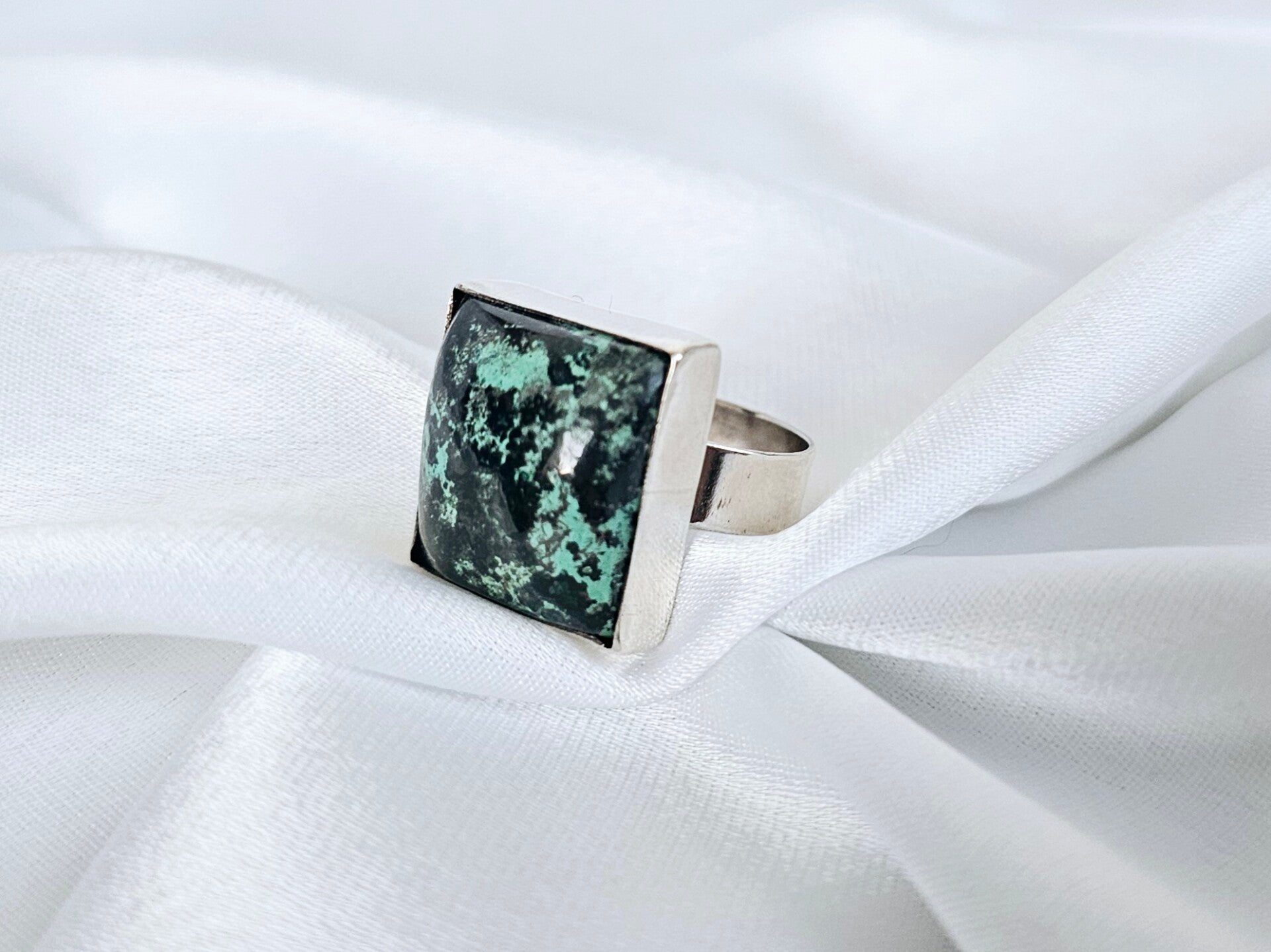 Handcrafted Sterling silver (.925) Ring set with a natural Turquoise gemstone in a square shape.