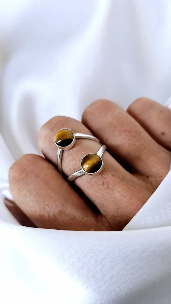 Handcrafted Sterling silver (.925) and natural Tiger eyes gemstones ring