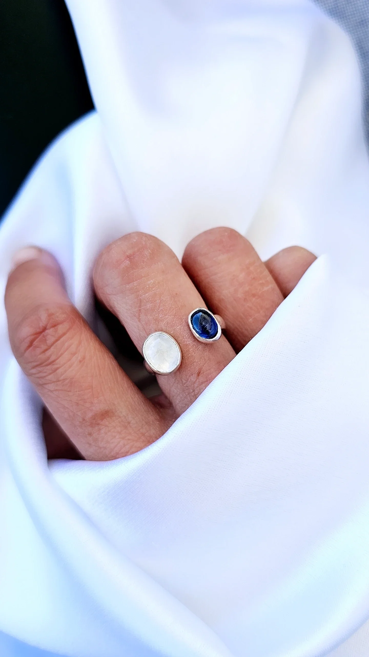 Handcrafted Sterling silver (.925) Ring set with 2 natural gemstones, Kyanite and Moonstone