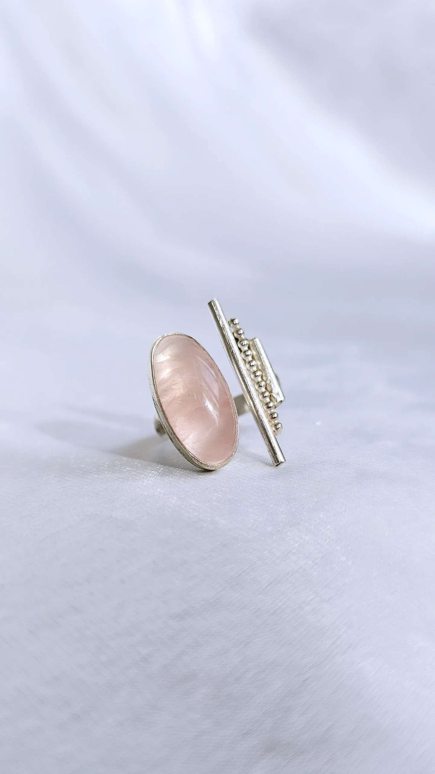 Handcrafted Sterling silver (.925) and natural Pink Quartz gemstone ring.
