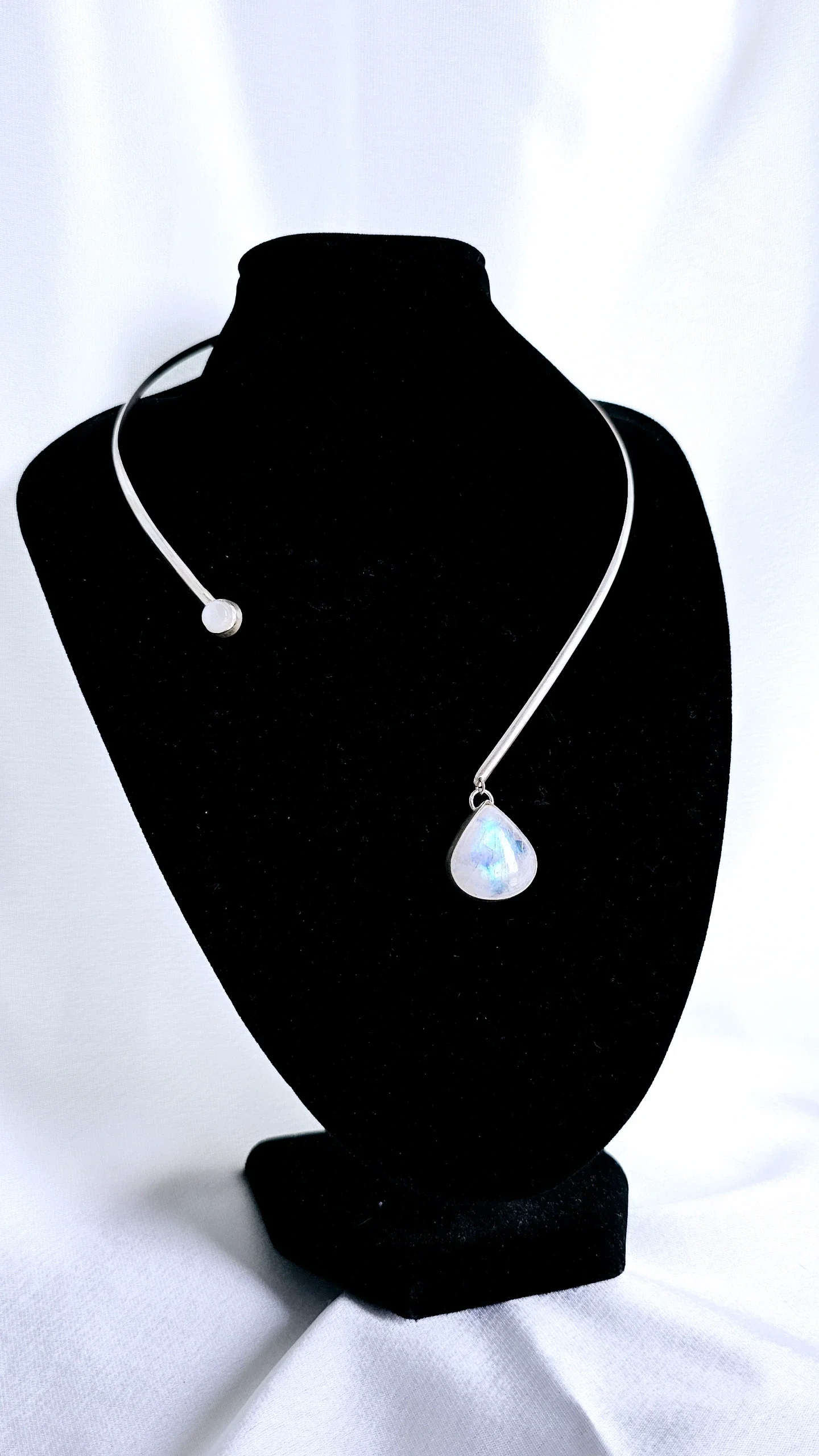 Handcrafted Necklace in Sterling silver (.925) set with 2 Genuine Moonstone s