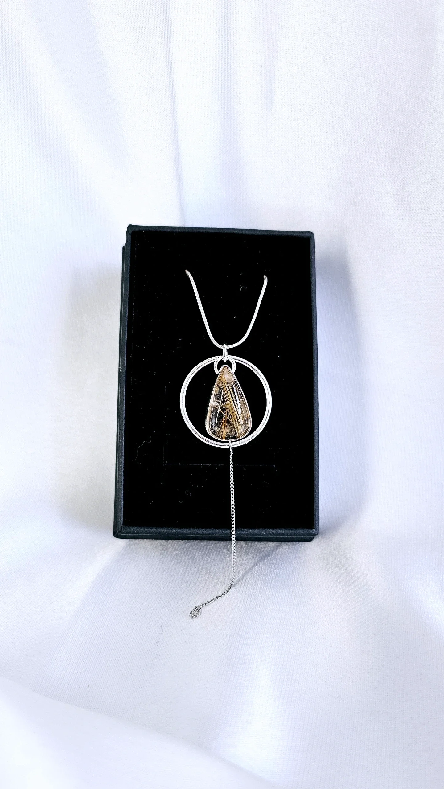 Handcrafted Sterling silver (.925) and genuine Rutilated Quartz Gemstone Pendant