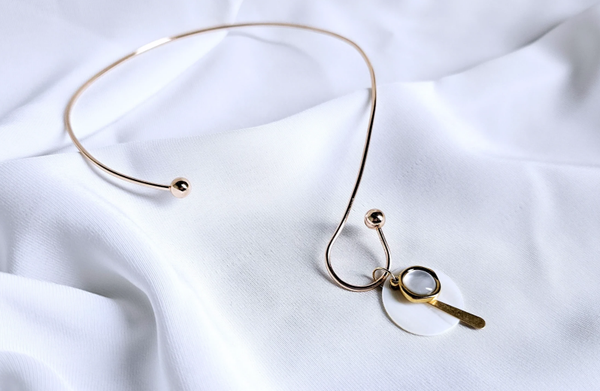 Handcrafted Choker in Stainless Steel* with Pendant in Stainless Steel and Seashell
