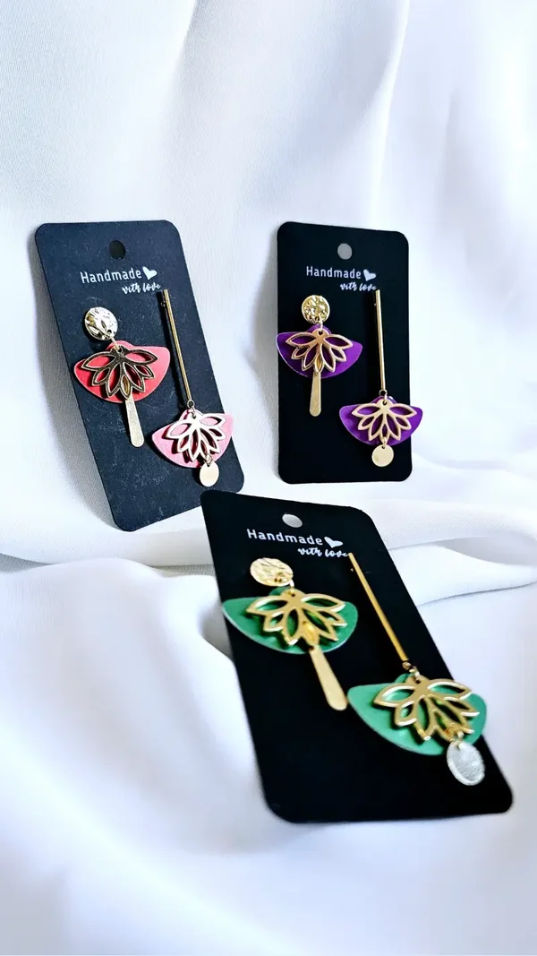 Handcrafted asymmetrical Earrings in Stainless steel and SeaShell